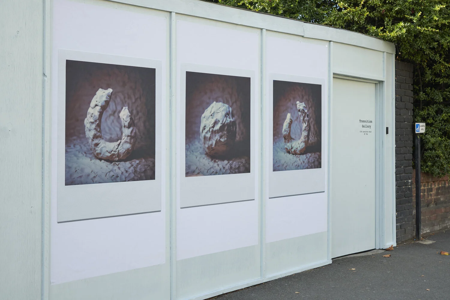 Around the corner from a greengrocer’s, three C-prints show polaroids that show small clay objects against a clay background. I can see the impressions of fingertips. I can see nervous activity. We enter the gallery space.
